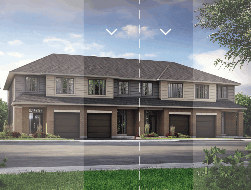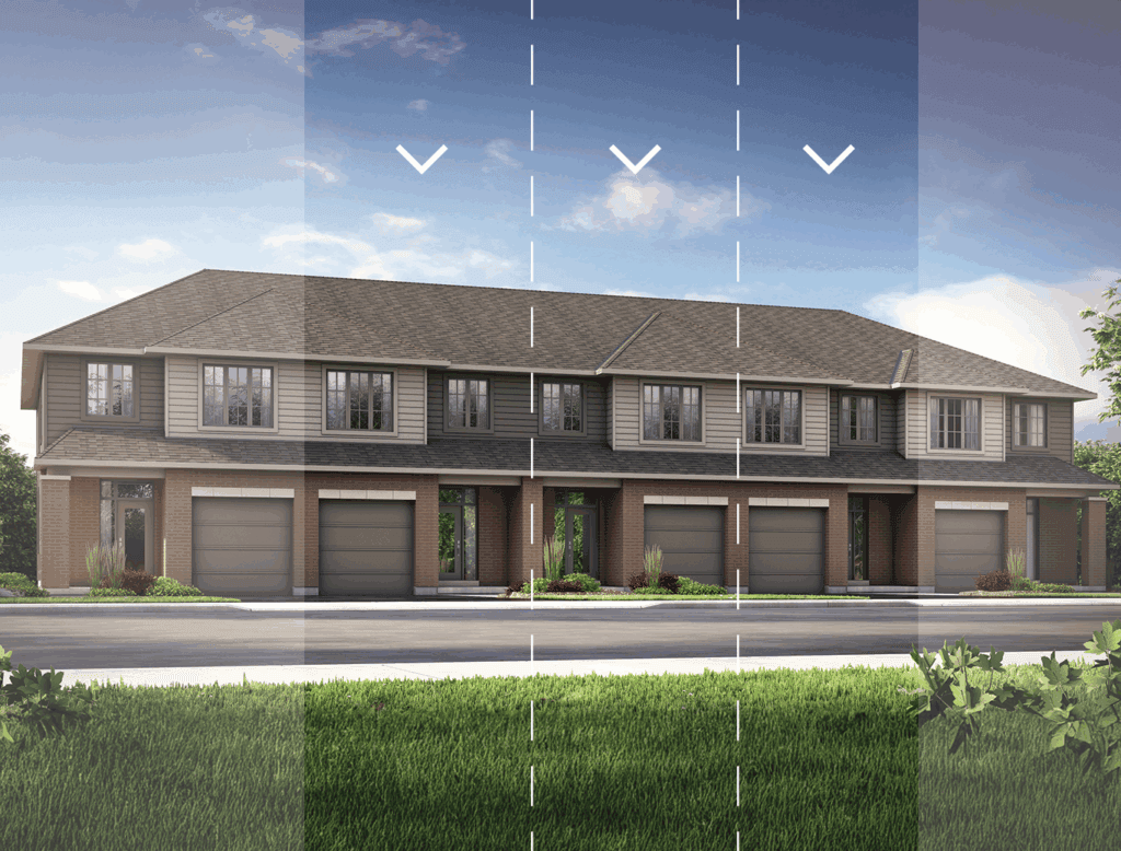 The Bronte middle-unit Horizon Town features 3 bedrooms and 2.5 bathrooms in a bright and open 1490 sq.ft. This model is equipped with a single-car garage.