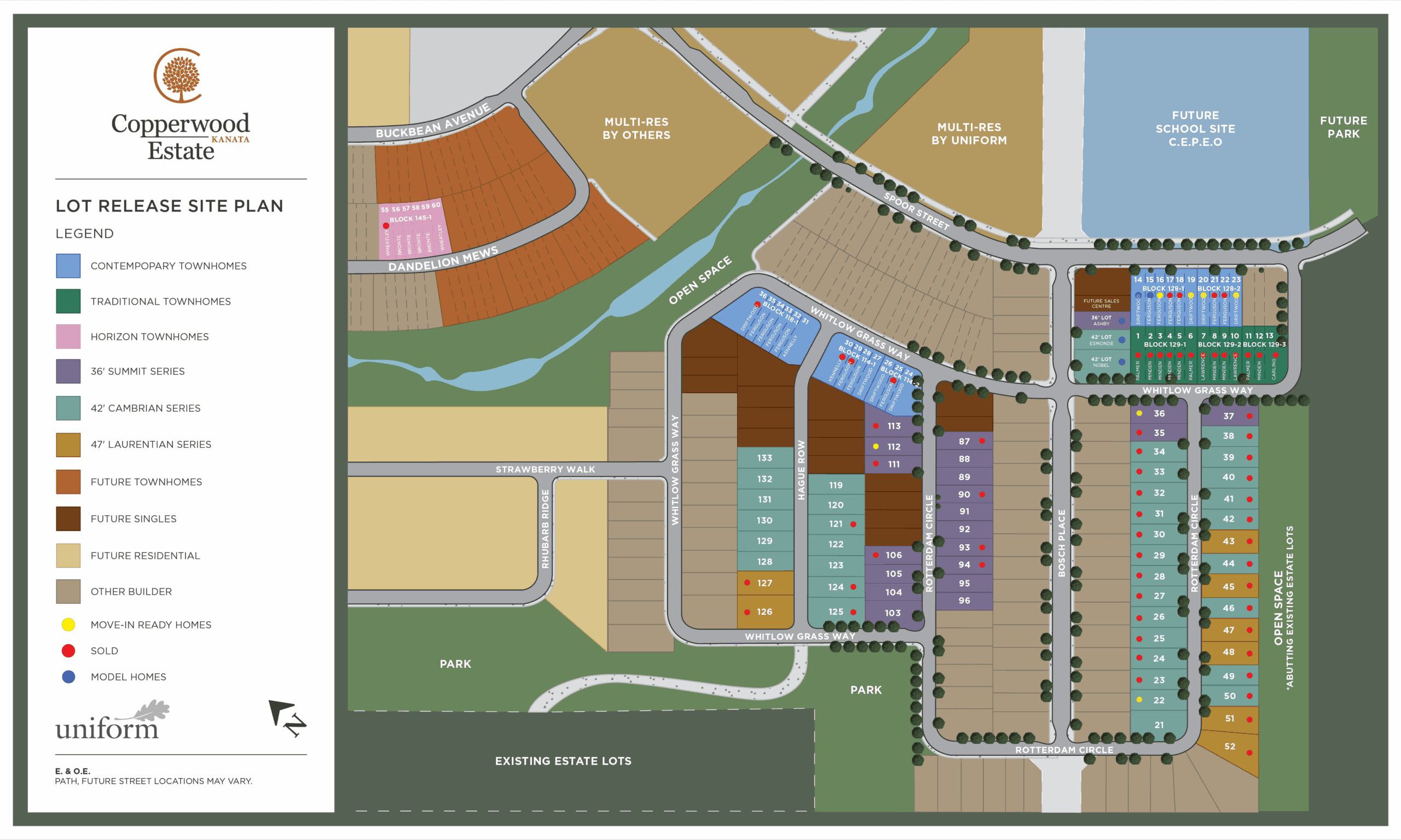 The Copperwood Estate site plan will feature lively streetscapes that seamlessly blend with the natural environment, enriching the existing community. The site is enveloped by green spaces, parks, and an upcoming rapid transit connection.