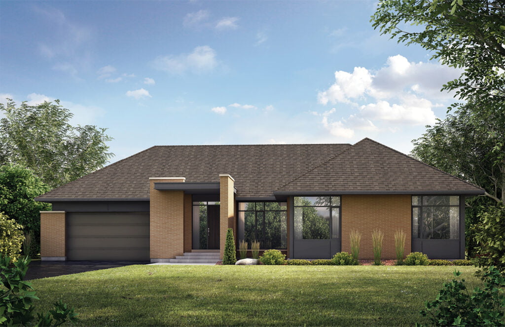 The Lorimer bungalow features 3 bedrooms and 2.5 bathrooms with a den and a double-car garage. This is a 2818 sq. ft. home.