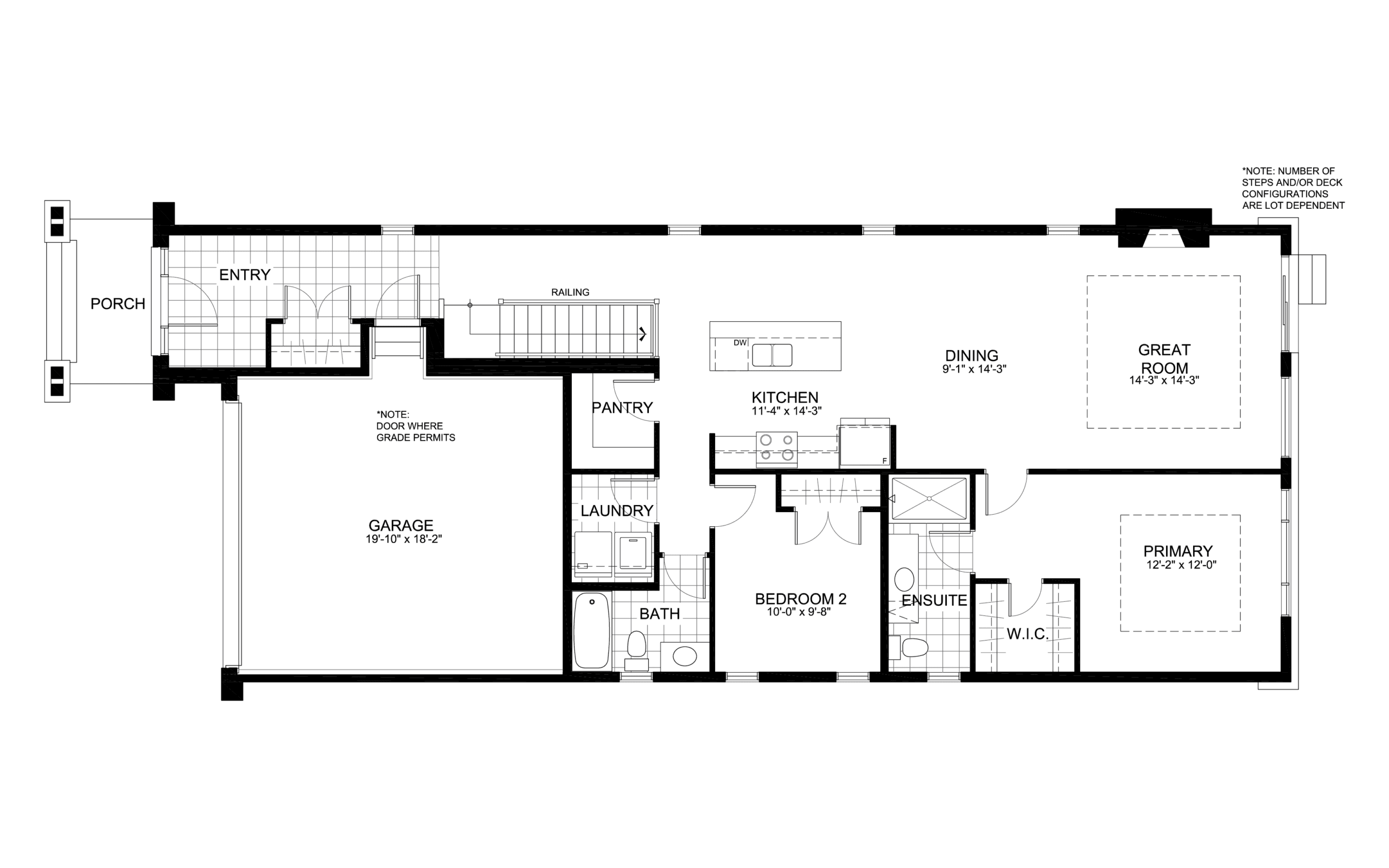 The Scotia single family bungalow, in our 36’ Lot Series features 2 bedrooms and 2 bathrooms with a double car garage.