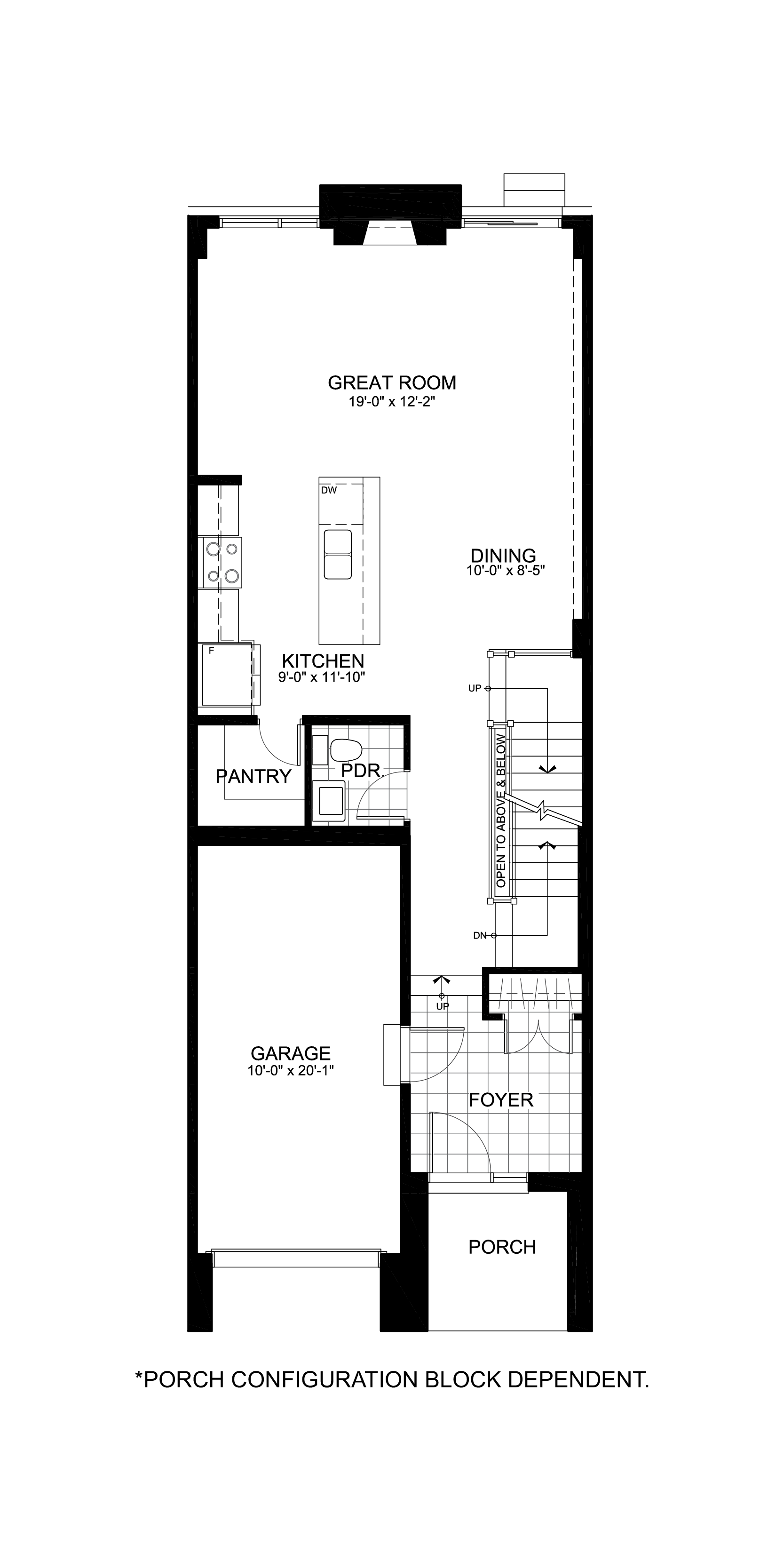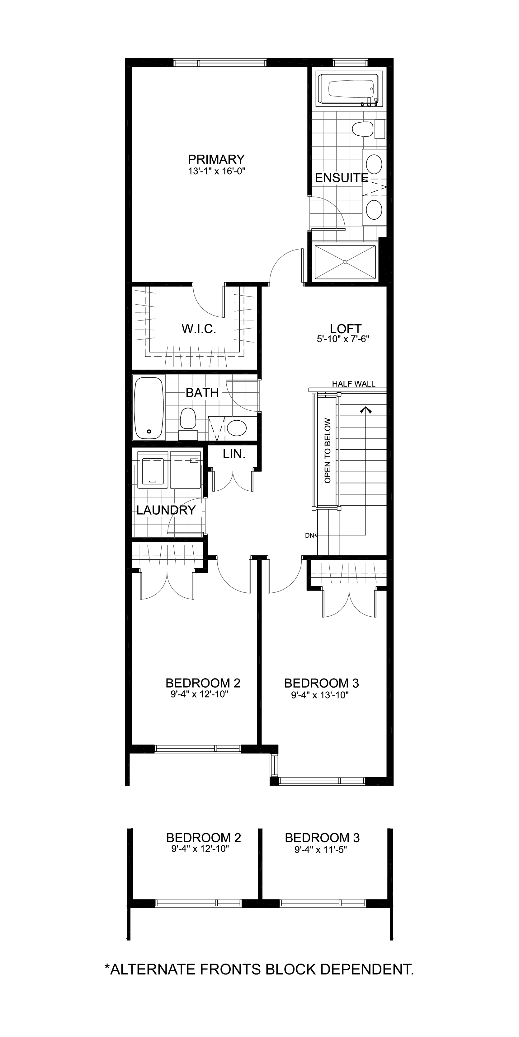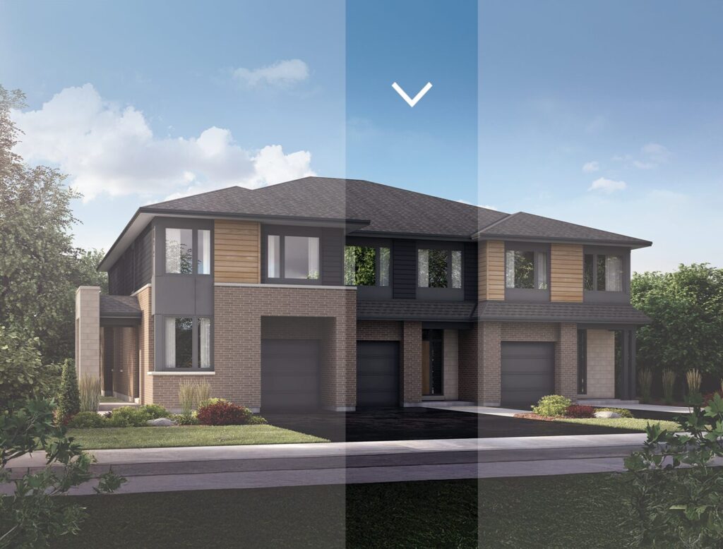 The Ferguson mid-unit Contemporary Townhome features 3 bedrooms, a loft and 2.5 bathrooms in a bright and open 2260 sq.ft. (includes 463 sq. ft. of finished basement). This model is equipped with a single-car garage.