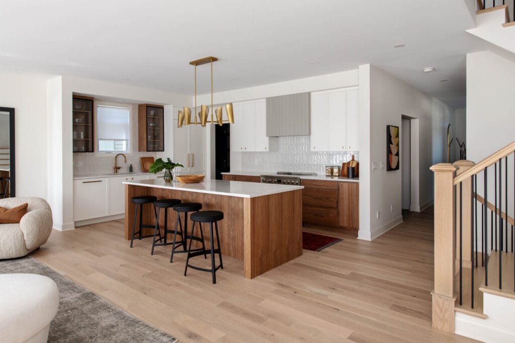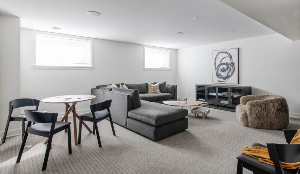 A contemporary design defined by expansive windows and striking street presence, The Esmonde introduces a bold new layout for 2025. This home features open-concept living spaces complemented by functional areas such as a mudroom, den, and pantry. The spacious second floor balances comfort and privacy, with three beautiful front bedrooms and two well-appointed secondary baths. At the rear, a luxurious primary retreat offers abundant natural light and endless possibilities for relaxation. The generous basement level completes the home with a stunning recreation area, featuring a home gym, custom bar, and home theatre.